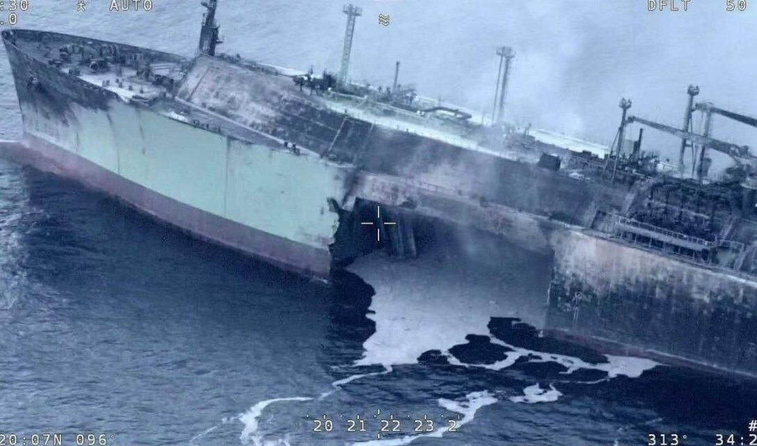 Officials have cautioned nearby ships to maintain a safe distance due to potential hazards, including the risk of explosion, gas leakage, and structural instability.
